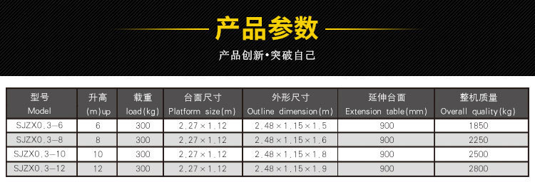 1、 剪叉式主體結構和安全護欄,根據需要做伸縮臺面