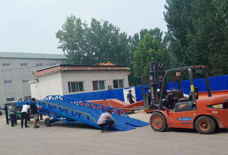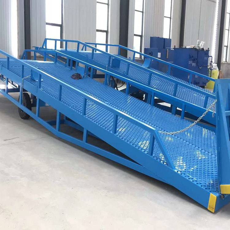 移動式登車橋在現(xiàn)代物流現(xiàn)場已是非常易見的結(jié)構(gòu)形式,它是企業(yè)物流鏈的起點(diǎn)與終點(diǎn),是企業(yè)快速、安全周轉(zhuǎn)產(chǎn)品及貨物的一個裝卸貨操作平臺。裝卸貨操作平臺的高度固定,但來往運(yùn)輸車廂的廂地高度不一,運(yùn)輸車輛與裝卸貨站臺之間總是形成一定的高度落差或間隙。造成搬運(yùn)叉車不能進(jìn)出運(yùn)輸車輛直接裝卸貨物,運(yùn)用登車橋提供可靠的連接。使搬運(yùn)叉車能夠安全、快速地進(jìn)出運(yùn)輸車輛進(jìn)行裝卸貨作業(yè),使用過程平穩(wěn)可靠,安全性能高,裝卸貨物時節(jié)約了大量時間,省卻了大量人力,使裝卸貨物大大的提高了效率。臺面采用特制的菱形網(wǎng)格板有可靠的強(qiáng)度,能保證長期使用而不變形。它的菱形網(wǎng)狀結(jié)構(gòu),充分保證了防滑性能,使叉車有更好的爬坡性和可操縱性,即使在雨、雪天氣,仍能保證正常使用。